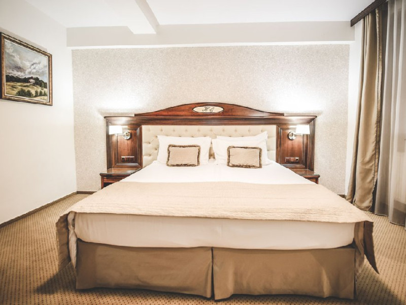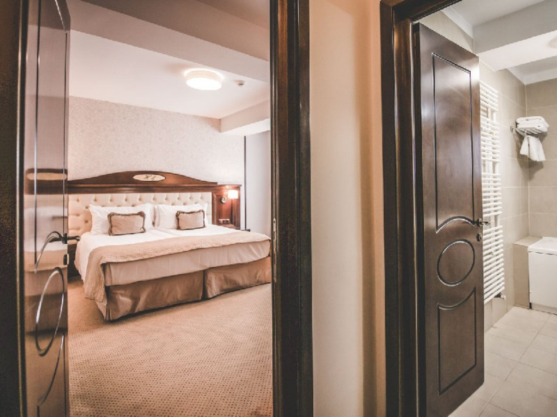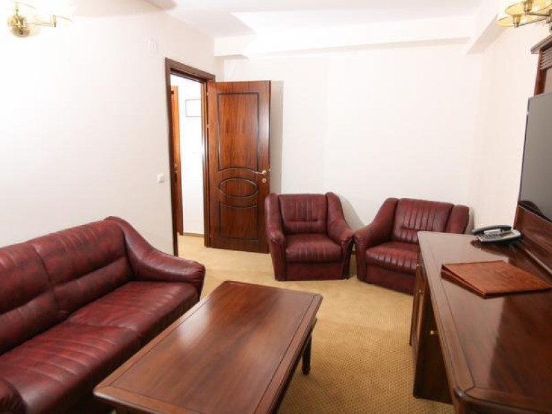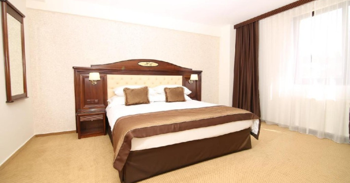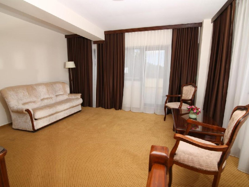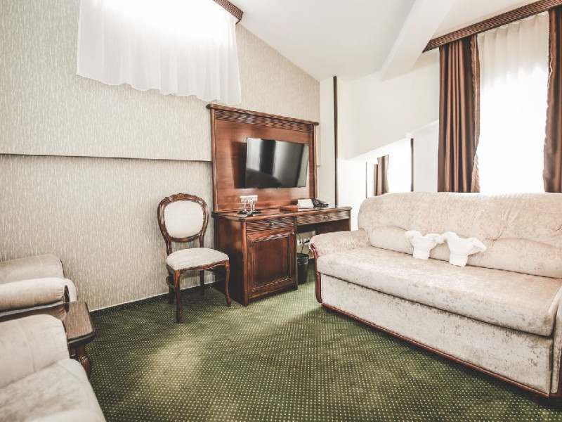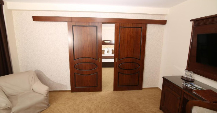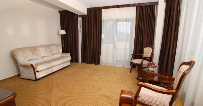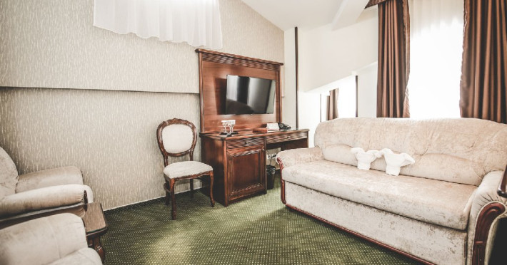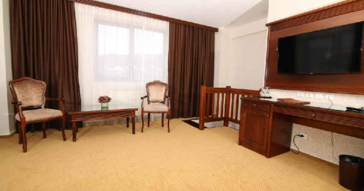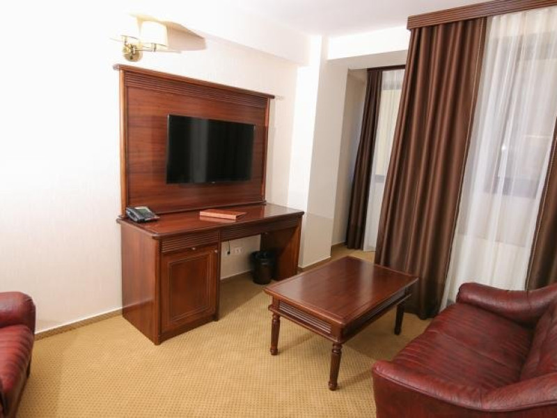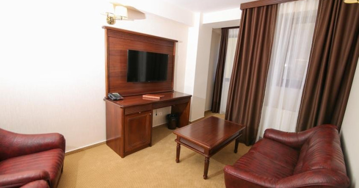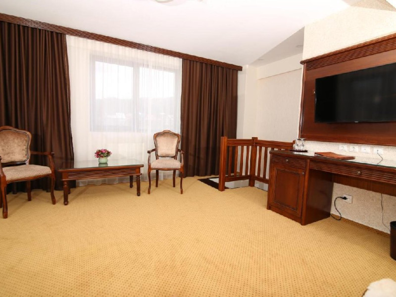 Dotari camere: minibar cu produse, seif, uscator de par, TV LED diagonala 82 cm, televiziune prin cablu, telefon, internet WI-FI, sistem incalzire, papuci si halat de baie, balcon.