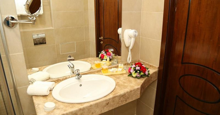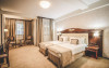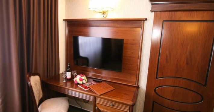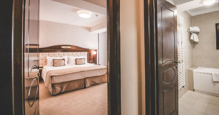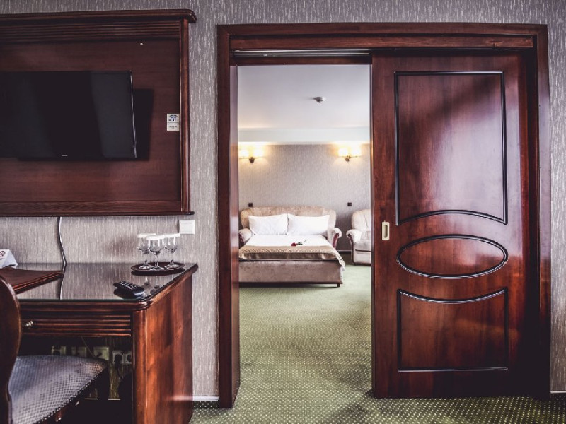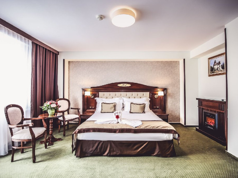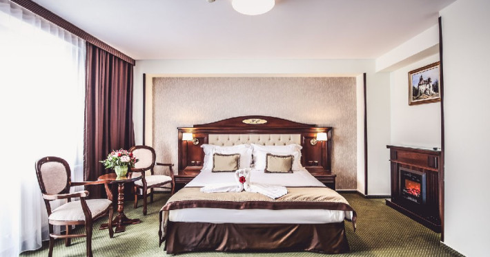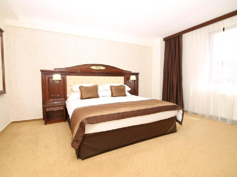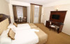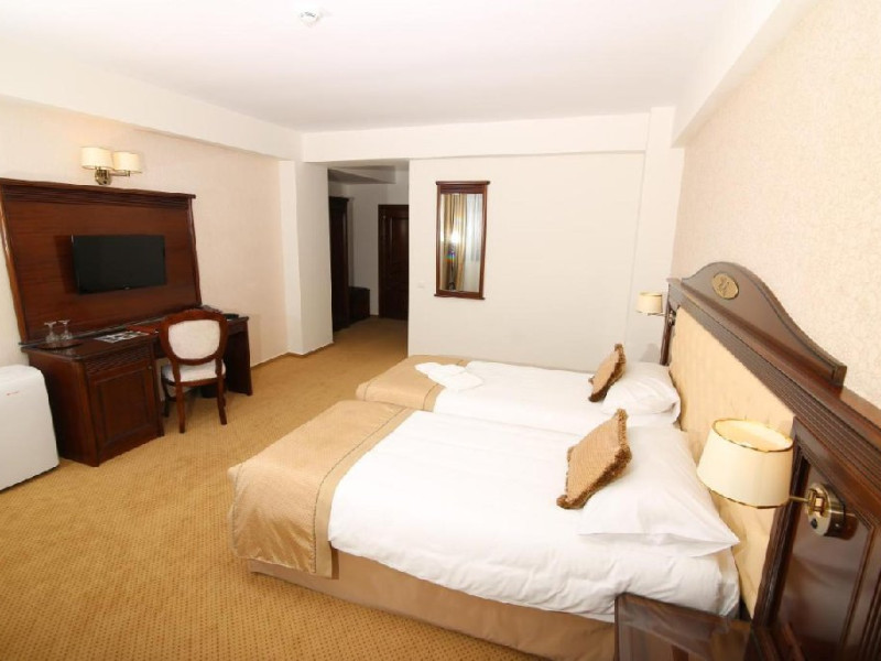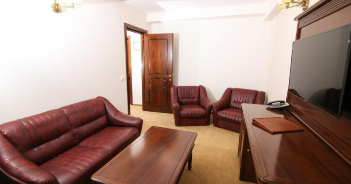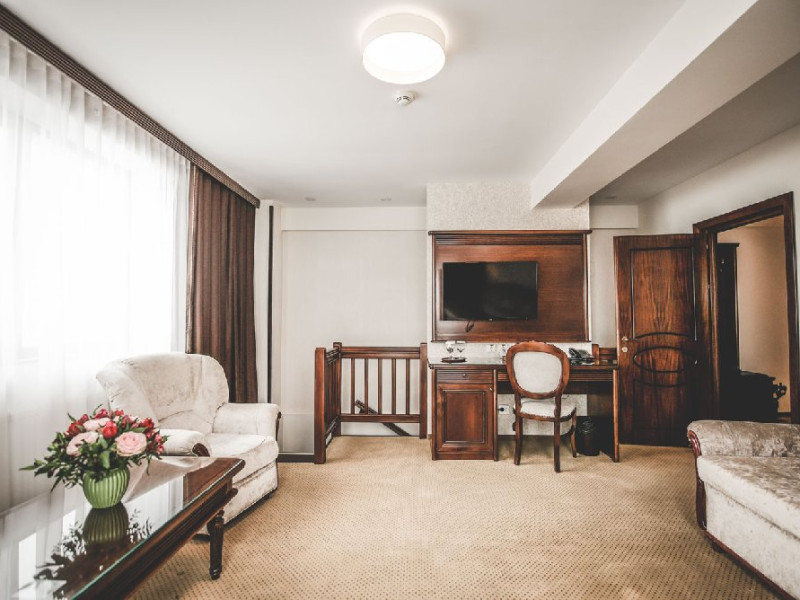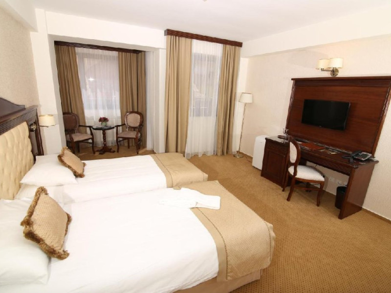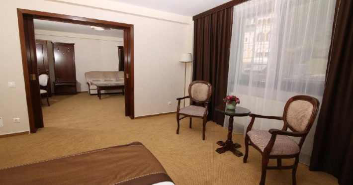Dotari camere: minibar cu produse, seif, uscator de par, TV LED diagonala 82 cm, televiziune prin cablu, telefon, internet WI-FI, sistem incalzire, papuci si halat de baie, balcon.