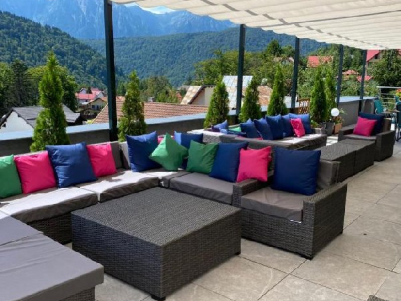 Micul dejun se serveste in salonul de la etajul 1 la hotelului, atat in interior cat si pe terasa cu vedere panoramica.