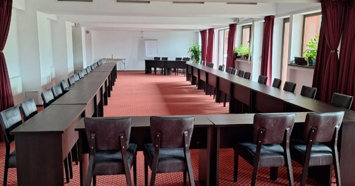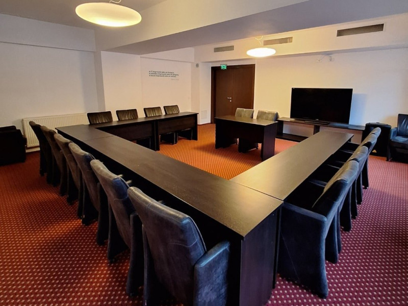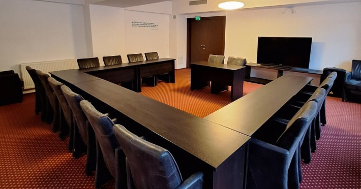 Sala mica de conferinta (maxim 20 locuri) - (dotari: ecran de proiectie, videoproiector, sistem sonorizare, flipchart, internet wireless)