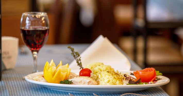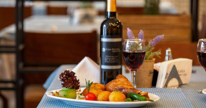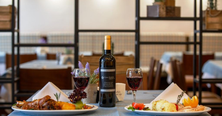La Casa Karina oaspeții au la dispoziție un restaurant care servește mâncare în stil bufet și à la carte. Masa poate fi servită atât în interior, cît si în aer liber, pe terasă, în funcție de vreme. Oaspeţii pot avea diverse băuturi răcoritoare sau alcoolice la bar. În cadrul proprietății există și o cafenea ideală pentru o gustare rapidă.