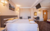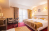 Dotarile camerelor de cazare se ridica la rangul unei unitati de 4 stele, avand sistem electronic de inchidere si deschidere a usii, baie proprie cu cabina de dus, uscator de par, minibar, cablu TV, internet gratuit, seif, balcon si lift.