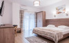 Apartamentele sunt formate din dormitor cu doua paturi twin si living cu canapea extensibila, baie proprie, TV, Wi-Fi.