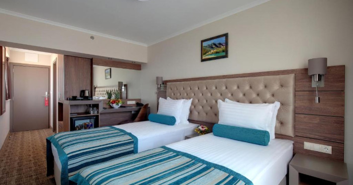 Camerele luminoase de la Hotel & Casino Cherno More sunt dotate cu aer condiționat, Tv și seif. Oaspeții au la dispoziție serviciul de room service pentru a servi masa sau diverse băuturi. În camere există baie cu cadă sau duș prevăzută cu foehn. Oaspeții au acces gratuit la serviciul Wi-fi în camere. Curățenia in cameră se face zilnic. Proprietatea oferă camere pentru nefumători.