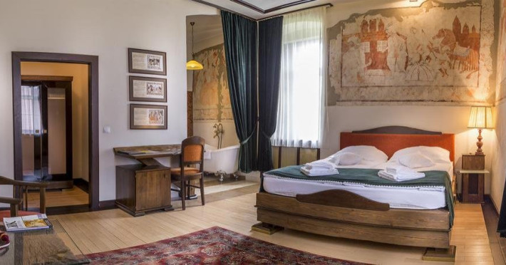 20 de camere in cele doua corpuri: Daniel Castle si Bethlen Castle: Camere signature: The Swan Suite, Constantinopole Room, Castle Gate Room, Junior Suite: Prince Bethlens Suite, The Logding of Olasztelek, DeLuxe: Catharinas Boudoir, Superior: Count Daniels Chamber, The Countess Boudoir, Coopers Room, Hut in The Land of Woods, Carpenters Room, Upholsteres Room, Lacemakers Room, Woodcarvers Room, Feltmakers Room, Standard: Millers Room, Weavers Room, The Secret Chamber, Stonecarvers Room, Blacksmiths Room.