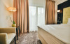 Suita este conceputa incat sa asigure tot confortul necesar unei familii. Compartimentarea este de tip open space cu mansarda si baie, dormitor cu un pat Queen-size (160 cm/ 200cm) si o canapea extensibila in living. Amenajarea interioara este moderna si spatioasa, cu elemente din lemn care integreaza armonios echipamente si facilitati de ultima generatie, creand un ambient placut, in care va veti simti ca acasa! Suprafata camerei este de aproximativ 40 m ( 45 m), iar ca facilitati dispune de o zona de relaxare, balcon sau terasa, incalzire, mocheta personalizata cu logo-ul Castelnor, baie cu cabina de dus, telefon cu conexiune nationala si internationala, TV, Wifi, cosmetice de baie, seif, birou, minibar, Aparat de cafea Nespresso cu capsule de cafea gratuite si fierbator pentru ceai.