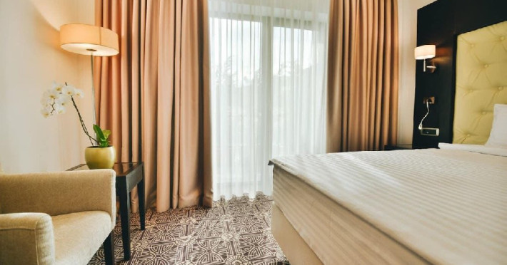 Camera dubla Standard este destinat cuplurilor si pune accent pe un design modern cu elemente din lemn si cu o paleta de culori cu texturi pamantesti, atmosfera care imbie la intimitate! Intrarea se face intr-un mic hol, in stanga sau dreapta fiind pozitionata baia privata, iar in fata se intra in dormitorul propriu-zis, ocupat de un pat matrimonial imens sau 2 paturi twin. Aceasta camera beneficiaza de incalzire si TV cu ecran plat cu canale prin cablu.
