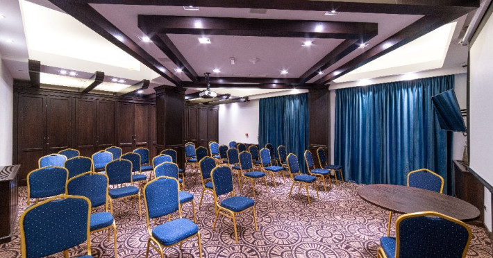 FACILITATI EVENIMENTE: Indiferent de conceptul evenimentului ales, sala de conferinta este echipata cu toata infrastructura necesara si este gandita sa le ofere participantilor confortul si intimitatea de care au nevoie. Facilitatile principale: sala de meeting - 25-50 locuri, proiector, sistem de sunet, flip chart, ecrane LCD de mari dimensiuni, catering si articole de birou.