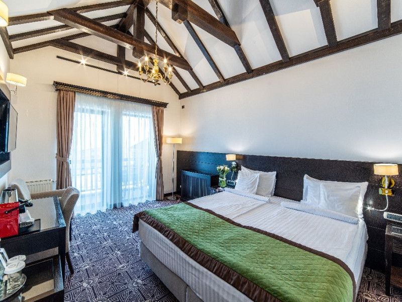 Camerele noastre Deluxe sunt extrem de confortabile, iar decorul modern al acestora emana caldura, liniste si rafinament. Camerele Deluxe pot fi destinate cuplurilor sau familiilor cu copii. Suprafata camerei este de aproximativ 25 m iar ca facilitati dispune de balcon sau terasa, incalzire, mocheta, baie cu cabina de dus, telefon cu conexiune nationala si internationala, TV, aer conditionat, Wifi, cosmetice de baie, seif, birou, minibar, Aparat de cafea Nespresso cu capsule de cafea gratuite si fierbator pentru ceai.