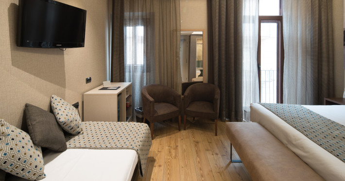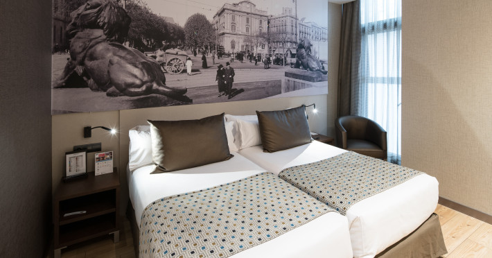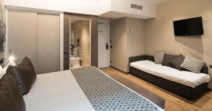 The hotel HOTEL CATALONIA BORN is located very close to various restaurants and bars. The city centre is around 500 m away. The nearest shops you can reach within around 250 m. The hotel is equipped with an internet corner, 2 lifts as well as parking spaces. In the outdoor area you will find a pool that is open seasonally. Furthermore, outside you can find a sun terrace. There is also a laundry service. The energy supply is 220 Volts. If you want to explore the holiday region, you can use the car rental service close to the hotel. American Express, Diners Club and Euro/Master Card are accepted as means of payment. Due to its barrier-free facilities , such as barrier-free entrances, the hotel is also suitable for wheelchair users. Catering Breakfast is offered from the buffet. Distances