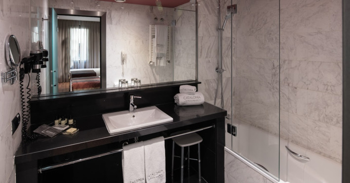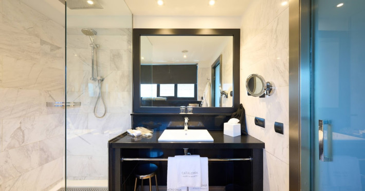 The hotel HOTEL CATALONIA PORT is located very close to various restaurants and bars. The city centre is also just a few steps away. Shops are right on your doorstep. The hotel has a 24h reception, a lobby bar, Wi-Fi, an internet corner, 2 lifts as well as parking spaces (limited). In the outdoor area you will find a pool that is open seasonally, where sun loungers and sun umbrellas are available for free. Kid`s chairs are available. There is also a laundry service. The energy supply is 220 Volts. For conventions and other business meetings, the hotel offers a conference area with fax as well as a catering service. If you want to explore the holiday region, you can use the car rental service close to the hotel. American Express, Diners Club and Euro/Master Card are accepted as means of payment. Due to its barrier-free facilities , such as barrier-free entrances, the hotel is also suitable for wheelchair users. Catering Breakfast is offered from the buffet. Distances