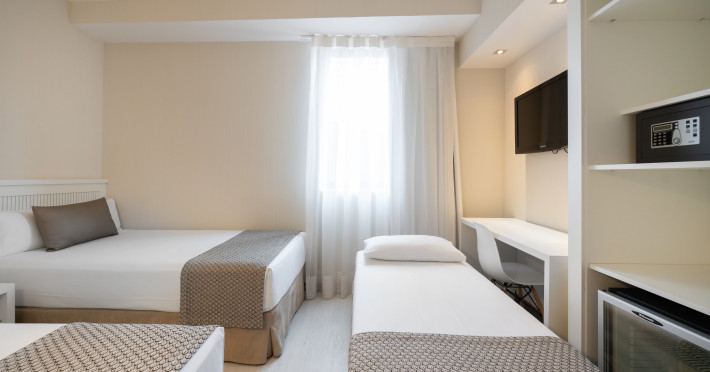 The hotel HOTEL CATALONIA ROMA is located very close to various restaurants and bars. The city centre is around 2 km away. Shops are right on your doorstep. The hotel has a 24h reception, Wi-Fi, an internet corner, 2 lifts as well as parking spaces. In the outdoor area you will find a pool that is open seasonally, where sun loungers are available for free. There is also a laundry service. The energy supply is 220 Volts. If you want to explore the holiday region, you can use the car rental service close to the hotel. American Express, Diners Club and Euro/Master Card are accepted as means of payment. Due to its barrier-free facilities , such as barrier-free entrances, the hotel is also suitable for wheelchair users. Catering Breakfast is offered from the buffet. Distances