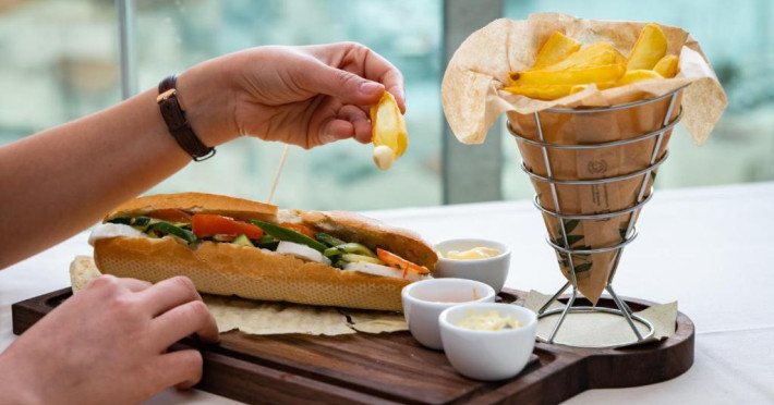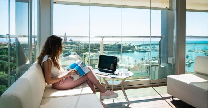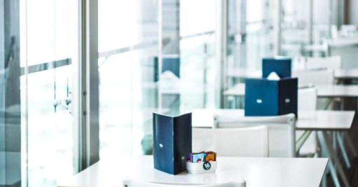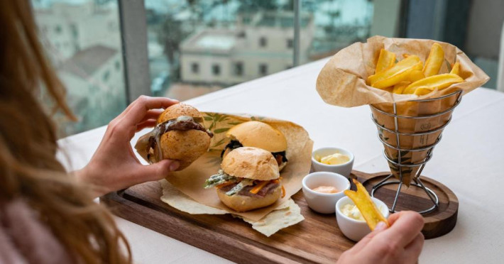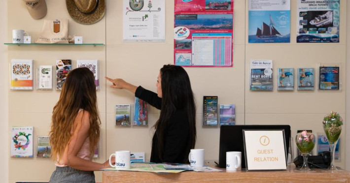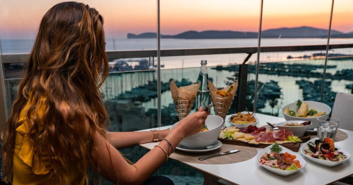 Restaurantul serveste preparate din bucătăria sardiniană si internatională, pentru pranz si cină. De asemenea, oaspetii pot savura băuturi la Skybar Blau de la ultimul etaj, care oferă acces gratuit la internet WiFi si vedere panoramică. In plus, există un terminal de internet gratuit in centrul de afaceri.
