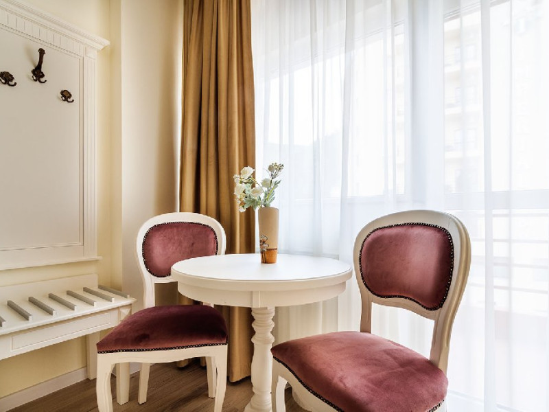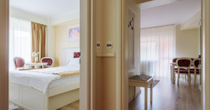 Hotelul dispune de camere duble si apartamente, fiecare camera avand o arhitectura unica si oferind prin dotarile sale confortul necesar relaxarii. Cea mai mare parte a camerelor va ofera o privire panoramica a statiunii si a muntilor care o inconjoara.