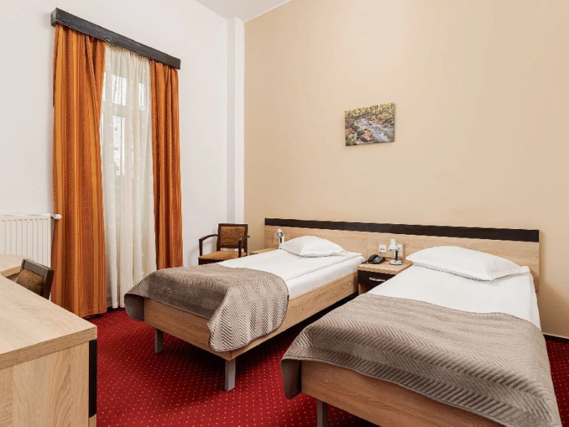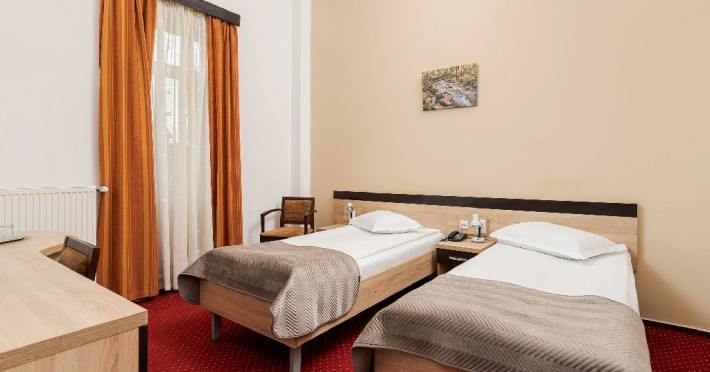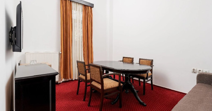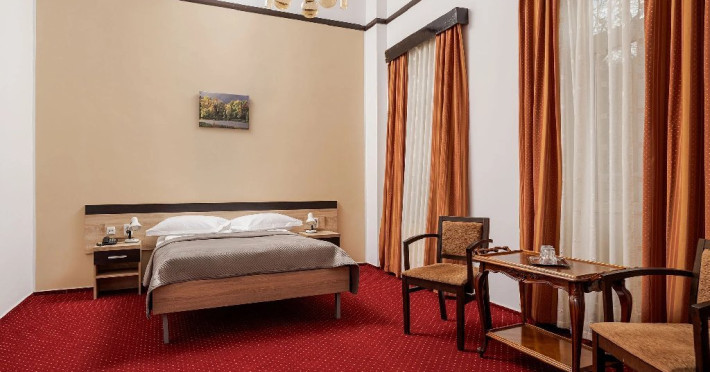 Hotelul ofera o atmosfera linistita si acces facil la servicii esentiale pentru refacere si relaxare. Este alegerea ideala pentru cei care isi doresc un sejur tihnit, cu acces direct catre propria baza de revitalizare - un spatiu dedicat tratamentelor si curelor balneare, intr-un cadru practic si accesibil.