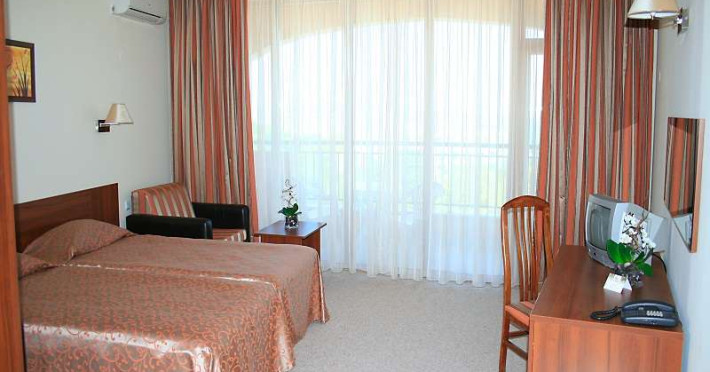 Camerele duble ( 30 mp.): sunt dotate cu doua paturi single, canapea extensibila, aer conditionat, baie cu cada, uscator de par, televizor, telefon, mini bar, conexiune internet ( contra cost) podea acoperita cu parchet si mocheta.