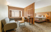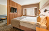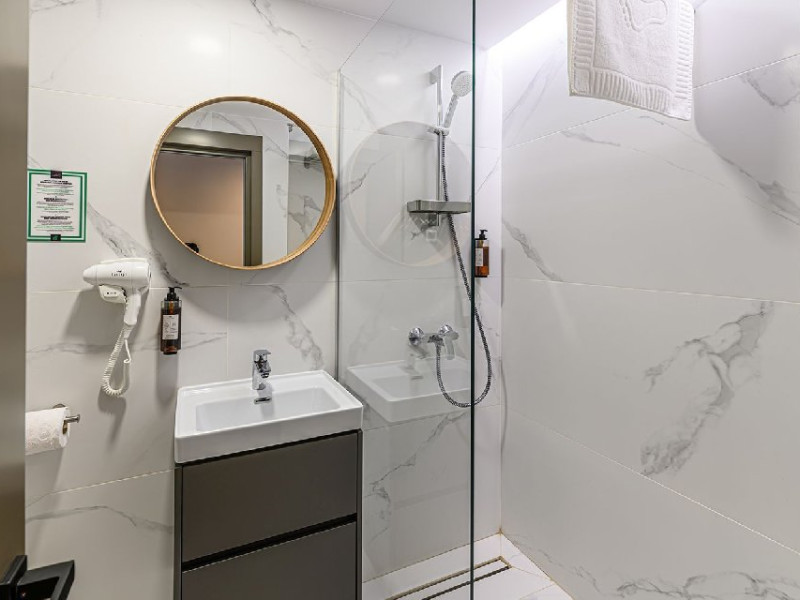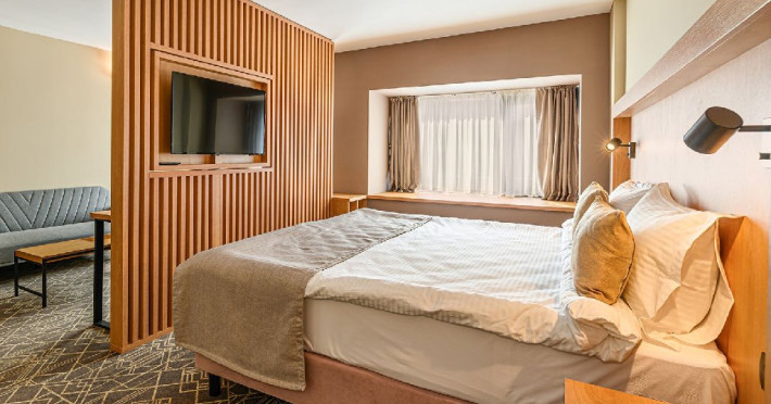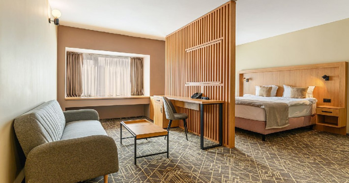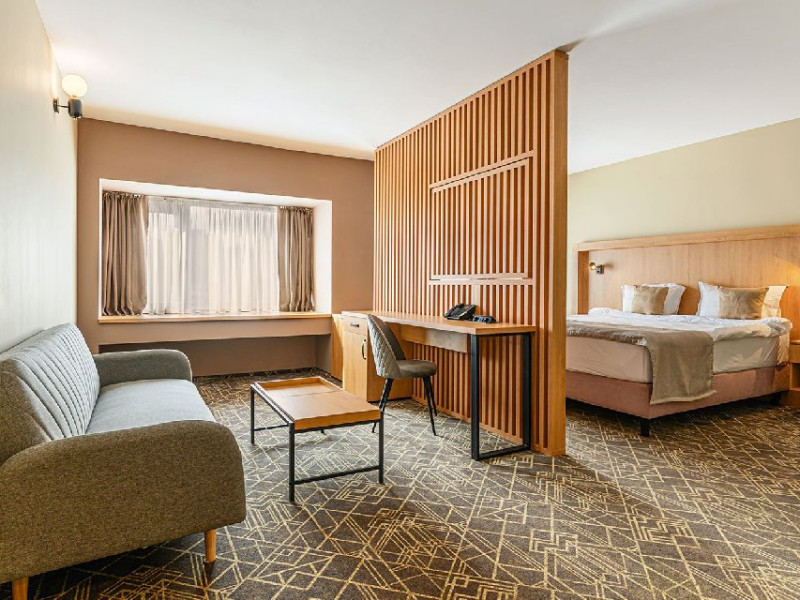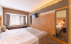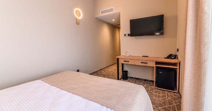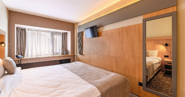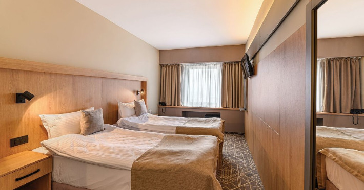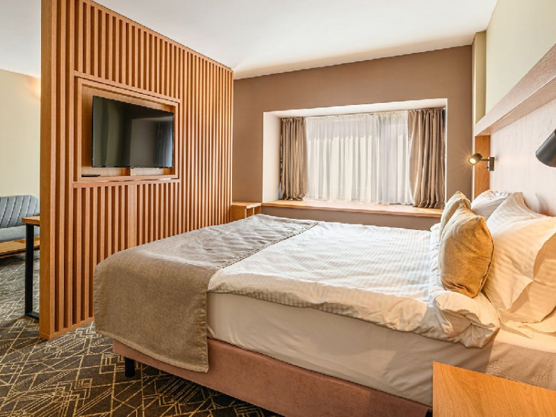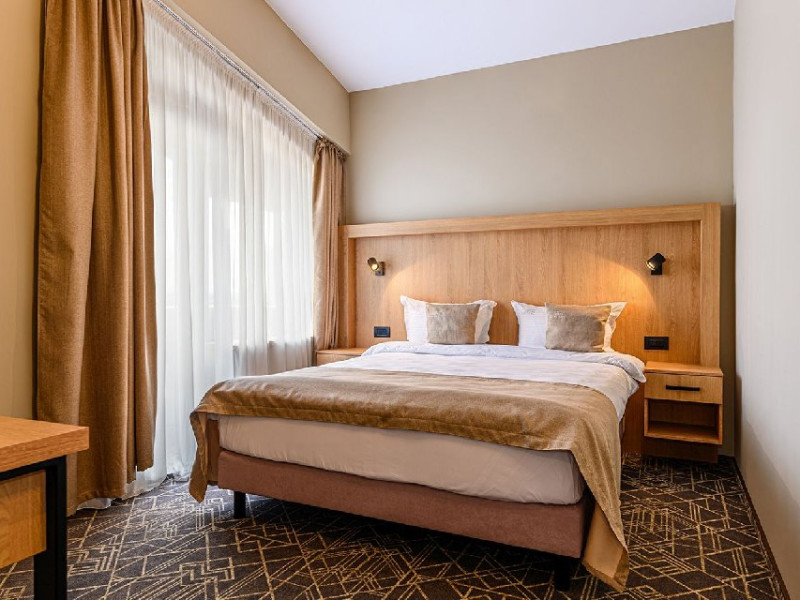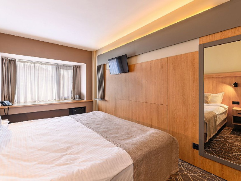 Camerele duble dispun de baie cu dus, cosmetice baie, uscator de par, smart TV, acces cu cardul, birou, seif, telefon. Unele camere au balcon. Pentru familii cu copii hotelul dispune de studiouri cu canapea extensibila.