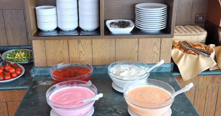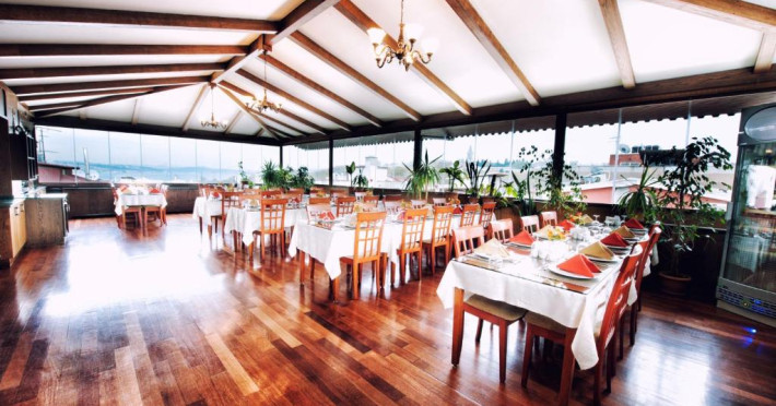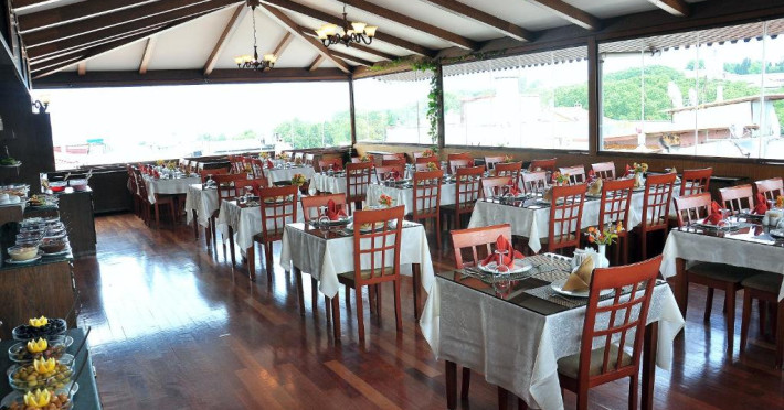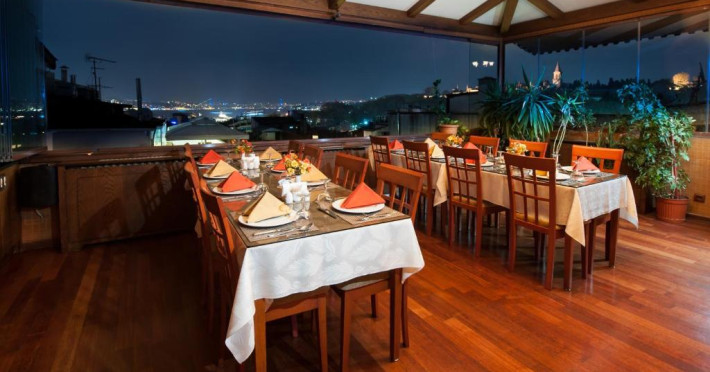 Oaspetii pot admira panorama cu imprejurimile istorice ale hotelului, in timp ce savurează specialităti internationale si regionale la restaurantul de pe acoperis. Barul serveste băuturi reci răcoritoare.