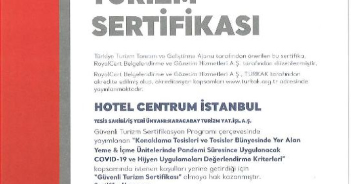 Hotelul Centrum Istanbul este situat in apropiere de Palatul Topkapi si la mică distantă de mers pe jos de Moscheea Albastră si de Marele Bazar. Acesta oferă un restaurant pe acoperis, un centru spa si acces gratuit la internet WiFi.
