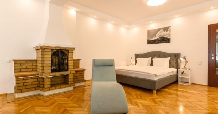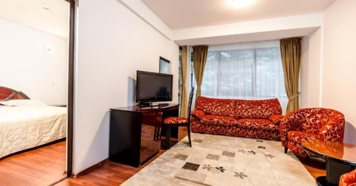 Hotelul beneficiaza de 4 apartamente cu pat matrimonial in dormitor si canapea extensibila in living