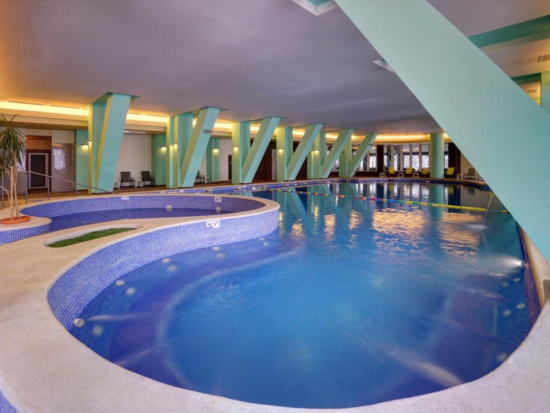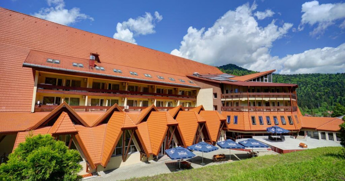 Hotelul este situat in zona centrala a statiunii, la 100 m de Lacul Ciucas. Facilitati hotel :228 locuri de cazare, structurate în 97 camere duble, 13 apartamente si 4 partamente de lux, Spa â o piscina semi-olimpica dotata cu jacuzzi, un bazin pentru copii cu adâncimea de 0, 5 metri si un bazin de hidrokinetoterapie,i baza de tratament, dotata cu o sala de gimnastica (pentru fitness), sauna, masaj, jacuzzi, bai galvanice, electroterapie, salina, bai carbo-gazoase, împachetari, aplicatii cu parafina, masti faciale si un cabinet medical de specialitate, 5 sali cu o capacitate totala de 300 persoane,restaurantul cu vedere spre ambele parti padure, respectiv centrul orasului, dispune de 170 locuri, de sonorizare proprie si de orchestra la cerere, terasa de 60 locuri, bar de zi si bar de noapte cu billiard.Totodata dispunem de bancomat la receptia hotelului si de parcare proprie spatioasa .Facilitati GRATUITE: accesul la parcare, internet în camera, zona Receptiei si a Barului prin fir sau prin Wireless. Facilitati camere :Acces cu cartela,Baie proprie cu dus sau cada,Televizor,Telefon,Balcon,Minibar,MiniseifDatorita dinamicitatii domeniului disponibilitatea ofertelor se modifica de la un moment la altul. De aceea ofertele sunt valabile in limita locurilor disponibile. Agentia nu este responsabila pentru eventualele neconcordante care pot aparea intre informatiile privind tarifele si alte detalii din site si informatiile primite in agentie. In aceste cazuri vor avea prioritate, intotdeauna, informatiile primite in agentie.
