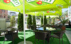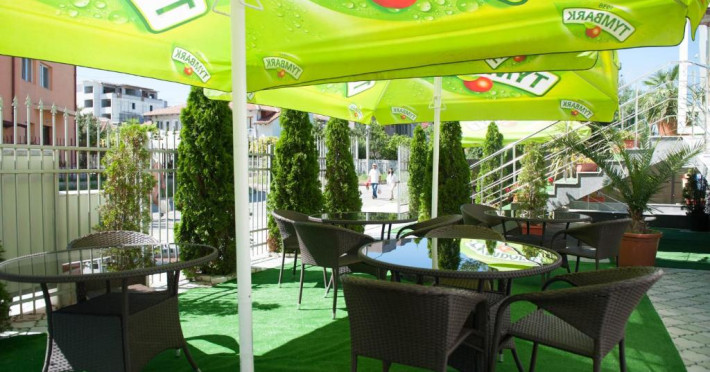 Oaspeții se pot relaxa pe terasa de vară, care este mobilată cu masă și scaune.