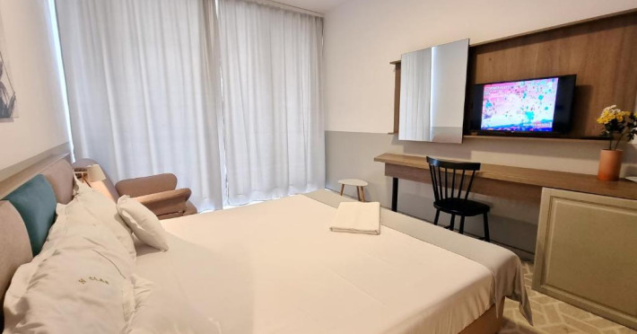 Facilități cameră dublă: pat matrimonial sau twin, baie proprie cu cadă sau duș, aer condiționat, televizor, telefon, uscător de păr, internet Wifi, minibar, seif, balcon.