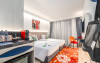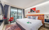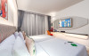 The hotel Hotel Clover Patong Phuket is located approximately 700 m from a public beach and about 500 m from the sea. The nearest bars and restaurants can be found at a distance of around 200 m. The old town is around 16,4 km away. A supermarket and other shops you reach after around 1,7 km. There is a 24h shuttle between the hotel and the airport 24h a day. On the beach are beach towels available. The GPS-verified hotel is equipped with a 24h reception (check-in is possible around the clock), a lobby, Wi-Fi, internet access, a lift, a jacuzzi, showers and changing rooms, a first aid kit, parking spaces (limited) as well as a TV lounge with satellite TV. Outside there is a separate and an integrated children's pool, where sun loungers, sun umbrellas and pool towels are available for free. Furthermore, you can relax outdoors on the roof terrace. You can store your valuables in the safe, and your luggage in the hotel`s storage room. In addition, the hotel Hotel Clover Patong Phuket is video-monitored 24h a day. For very young guests, kid`s chairs, highchairs and cots can be provided. There is also a laundry and ironing service. Ironing equipment can also be borrowed at the hotel. For your comfort the hotel page will ensure you are looked after. If necessary, you can contact the medical centre at any time. Guests at the accommodation can get a wake-up call from the hotel personnel. The energy supply is 220, 110 and 120 Volts. In addition, the hotel sells tickets for excursions. For guests on their honeymoon, the hotel has special offers such as a romantically-decorated room, personalised rooms/articles, rooms with a particularly romantic location and view, romantic dishes in the restaurant, champagne, sparkling wine, a basket of fruit or flowers in the room. In your hotel, a lot of focus is placed on sustainability. This includes the hotel`s own recycling bins, the provision of soap and shampoo dispensers, a central room air-conditioning and environmentally-friendly cleaning. The hotel requires that all guests pay a deposit upon arrival. Euro/Master Card, JCB and Visa are accepted as means of payment. Due to its barrier-free facilities , such as separate, barrier-free entrances, wheelchair accessible rooms, a handrail in the elevator and wheelchair-accessible bathrooms, the hotel is also suitable for wheelchair users. Catering As catering services the hotel offers half board, full board and breakfast only. Breakfast is offered American, continental, from the buffet or à la carte. Enjoy your lunch as a set meal or à la carte with starters, salads and desserts (extras on request). Dinner is also served as a buffet, as a set meal or à la carte with starters, salads and desserts (extras on request). Half board includes breakfast, lunch and dinner. When booking all-inclusive, one welcome drink is included. As part of the all-inclusive service, water (24h) is available around the clock and at no extra charge. For the meals, there are a restaurant (calorie-reduced, gluten-free and vegetarian dishes) and the cafeteria, the pool bar as well as a sky bar. The drinks menu of the hotel includes water, soft drinks, coffee and tea, beer and wine. You can take part in the cooking classes offered by the hotel during your stay. Distances- Discotheque: approximately at 3,7 km