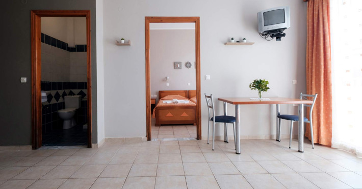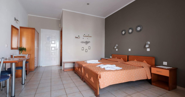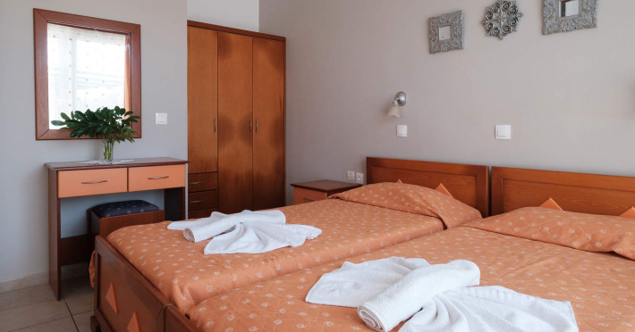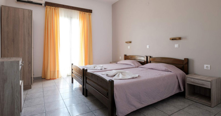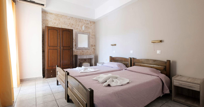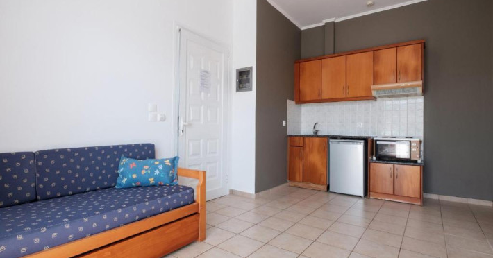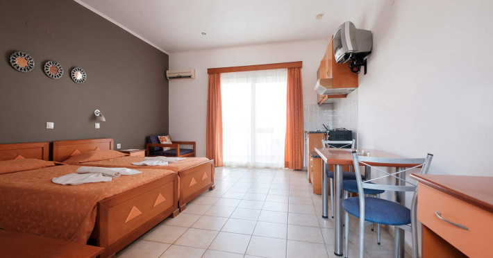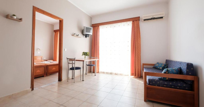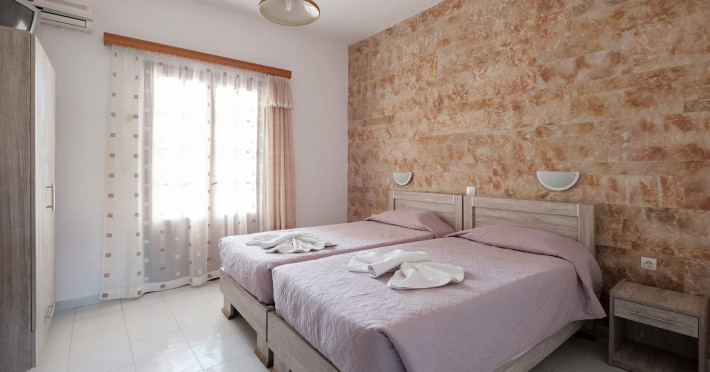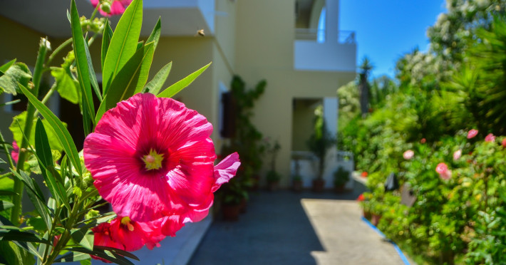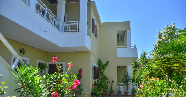 The comfortable studios and apartments are quintessentially Greek and come with balconies that offer views over the pool or the gardens.