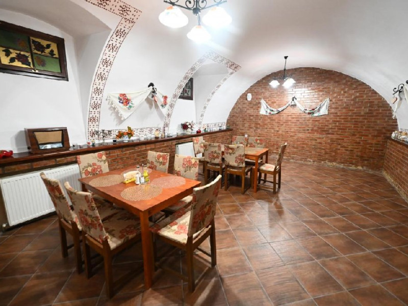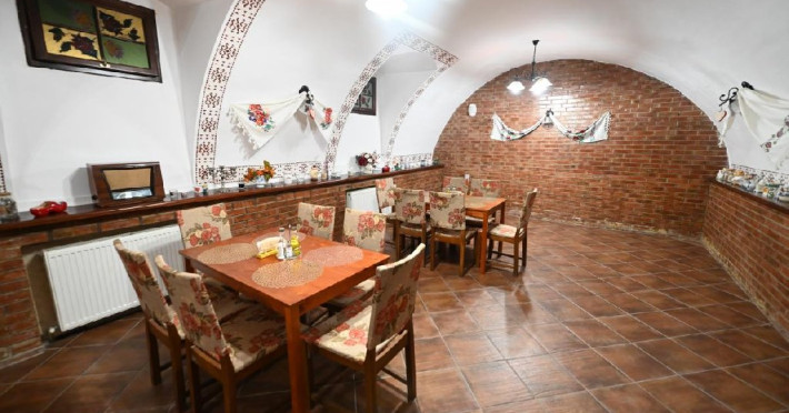 Crama este situata la subsolul restaurantului si va invita intr-un ambient rustic cu bolti si pereti din caramida rosie iluminata discret.