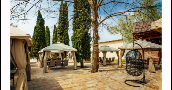 Terasa de vara imbina intr-un mod armonios stilul modern cu cel rustic. Este situata in parc, unde copilul dumneavoastra se poate juca in siguranta.