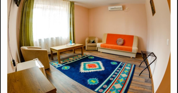 Dotari camere: baie cu cabina de dus, uscator de par, ventilatie, minibar, telefon, tv/ cablu.