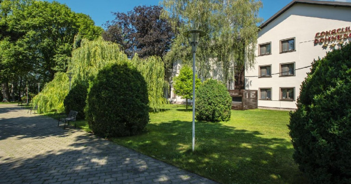 Salonul din parc dispune de o capacitate de maxim 250 locuri. Se poate utiliza pentru conferinte, simpozioane, evenimente private: nunti, botezuri etc.