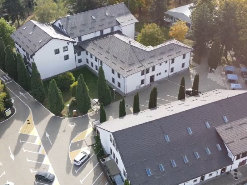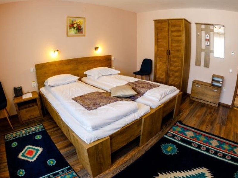 Hotelul are 2 etaje plus mansarda si un corp D (corp alaturat cladirii hotelului) care ofera 52 de spatii de cazare, dintre care 12 in corp D, elegante, largi si spatioase.