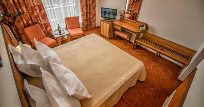 Facilități cameră dublă: pat matrimonial sau twin, baie proprie cu cadă sau duș, aer condiționat, televizor, telefon, uscător de păr, internet Wifi, minibar, seif, balcon.
