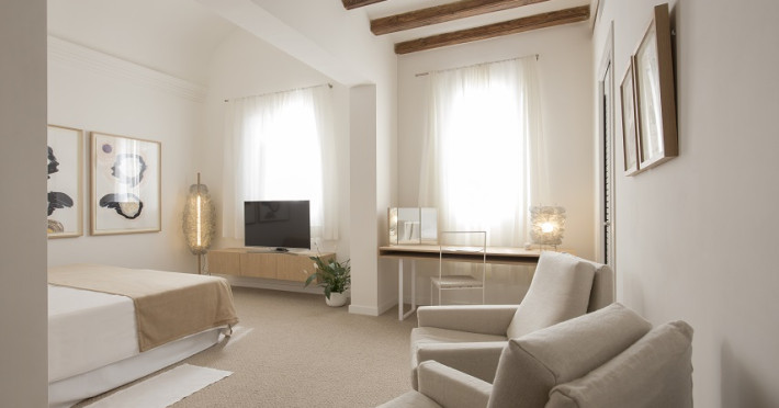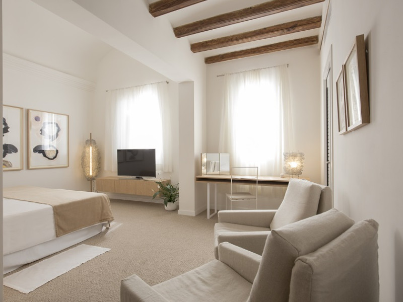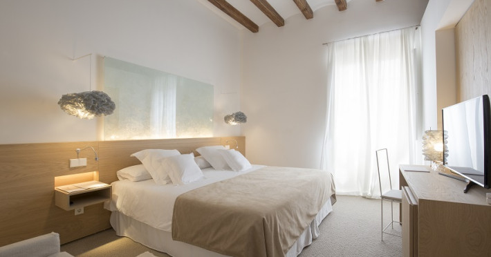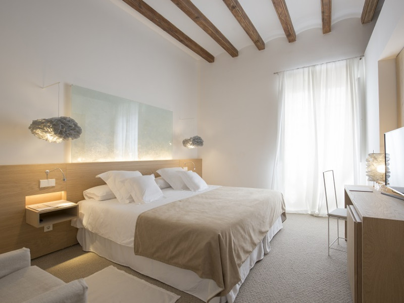 About 750 m from a beach and approximately 1 km from the sea is located the aparthotel Hotel Convent de la Missió. The old town is also just a a few steps away. Shops are right on your doorstep, a supermarket is around 200 m away. There is a shuttle service between the hotel and the airport. Nearby there is a disco and a theatre which offer entertainment in high season. On the beach are beach towels available. The air-conditioned hotel is equipped with a 24h reception (check-in is possible around the clock), a lobby bar, Wi-Fi, 2 lifts, a jacuzzi, a first aid kit, parking spaces as well as a TV lounge with satellite TV. In the outdoor area of the property you will find a heated pool that is open seasonally (open all year), where sun loungers, sun umbrellas and pool towels are available for free. Furthermore, you can relax outdoors on the sun terrace. Inside the hotel you can use an indoor pool. You can store your valuables in the safe, and your luggage in the hotel`s storage room. For your entertainment, the hotel offers a library/reading room. There is also a laundry and ironing service. For your comfort, in addition to the hotel pages and the concierge service, there is also a room service. If necessary, you can contact the medical centre at any time. Guests at the accommodation can get a wake-up call from the hotel personnel. For conventions and other business meetings, the hotel offers a business centre as well as a (auditorium-style) conference area with a total of 80 seats, printer as well as overhead projector. If you want to explore the holiday region, you can use the car and motorbike rental service close to the hotel. In addition, the hotel sells tickets for excursions. For guests on their honeymoon, the hotel has special offers such as special honeymoon packages. In your hotel, a lot of focus is placed on sustainability. This includes among others organic food and ecological meals. Due to its barrier-free facilities , such as barrier-free entrances and wheelchair accessible rooms, the hotel is also suitable for wheelchair users. Catering As catering services the hotel offers breakfast only. Breakfast is offered continental, from the buffet or à la carte. Enjoy your lunch as a set meal (extras on request). Dinner is also served as a set meal or à la carte (extras on request). For the meals, there are a restaurant with terrace (Mediterranean, calorie-reduced, gluten-free and vegetarian dishes) and a bar as well as the cafeteria. The drinks menu of the hotel includes 24h international alcoholic beverages. A picnic bench can be used by guests for self-catering. Appropriate clothing is required for lunch and dinner. Distances