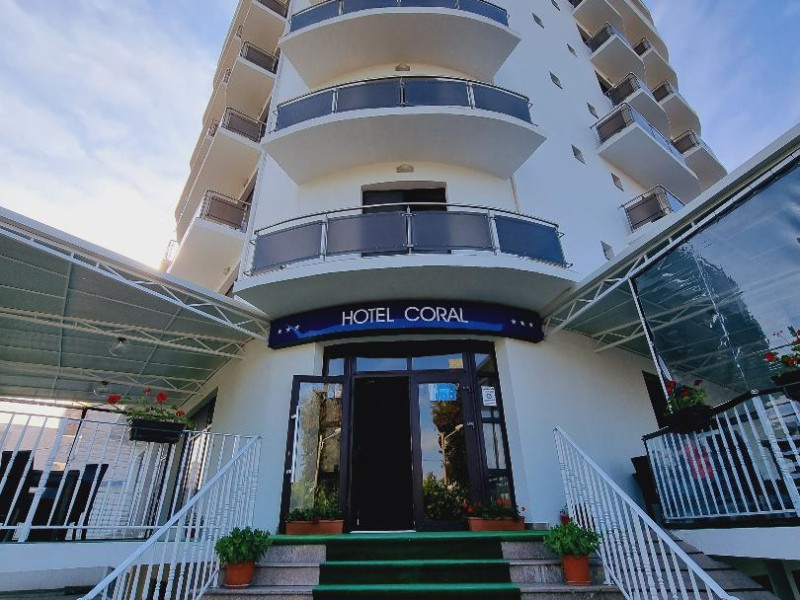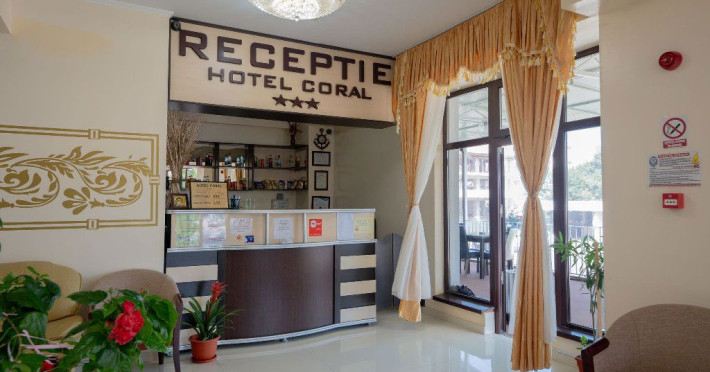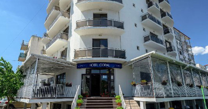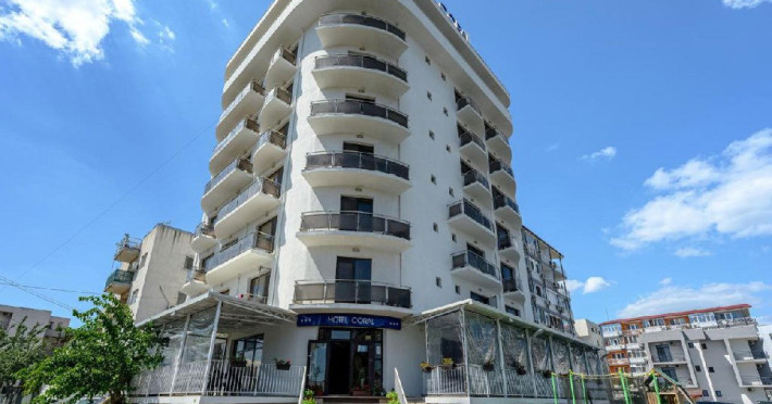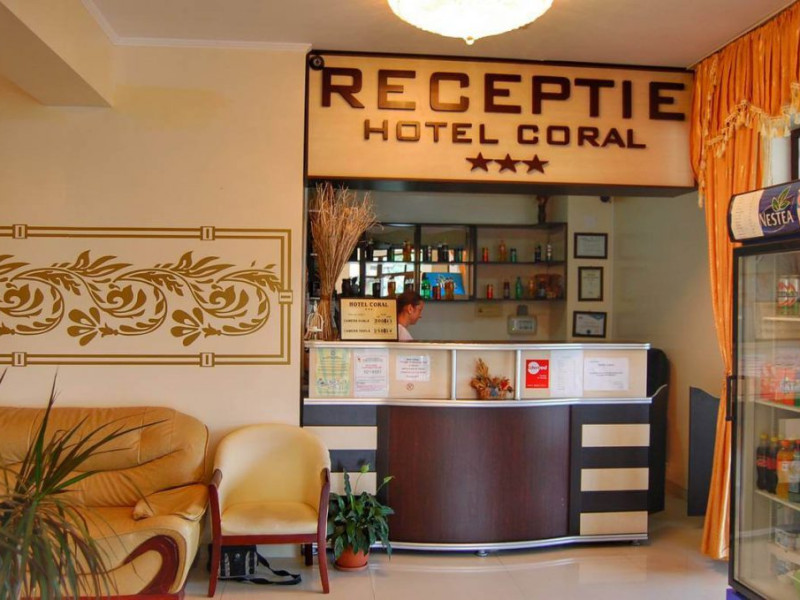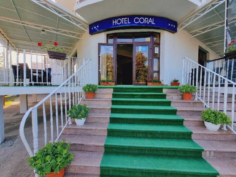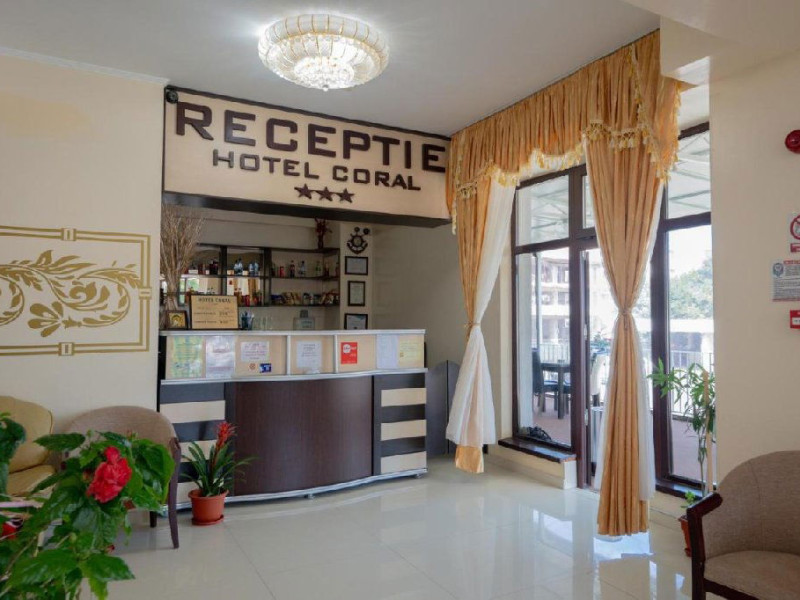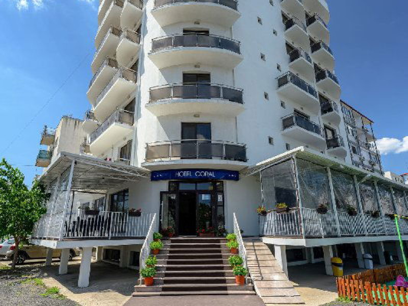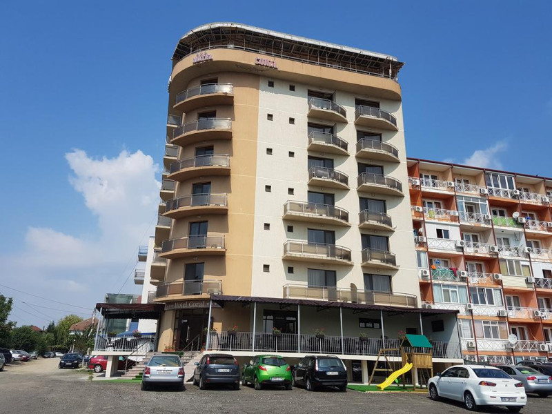 Hotel Coral din Eforie nord oferÄ servicii de calitate pentru vacante de neuitat. DotÄri generale: parcare proprie cu o capacitate de 70 locuri, loc de joaca pentru copii, terasa, demisol, parter si 7 etaje,lift. DotÄri camere: aer condiÈionat ,tv, mobilier modern, baie proprie cu cabina de dus, rÄcitoare, balcon pentru toate camerele, excepÈie cele de la parter si demisol. NumÄrul de camere :68,dintre camere 4 camere Twin, 6camere Triple, 58 camere duble.Datorita dinamicitatii domeniului disponibilitatea ofertelor se modifica de la un moment la altul. De aceea ofertele sunt valabile in limita locurilor disponibile. Agentia nu este responsabila pentru eventualele neconcordante care pot aparea intre informatiile privind tarifele si alte detalii din site si informatiile primite in agentie. In aceste cazuri vor avea prioritate, intotdeauna, informatiile primite in agentie.