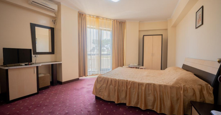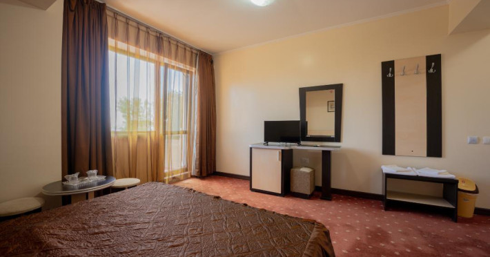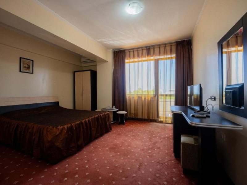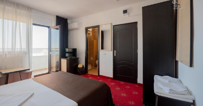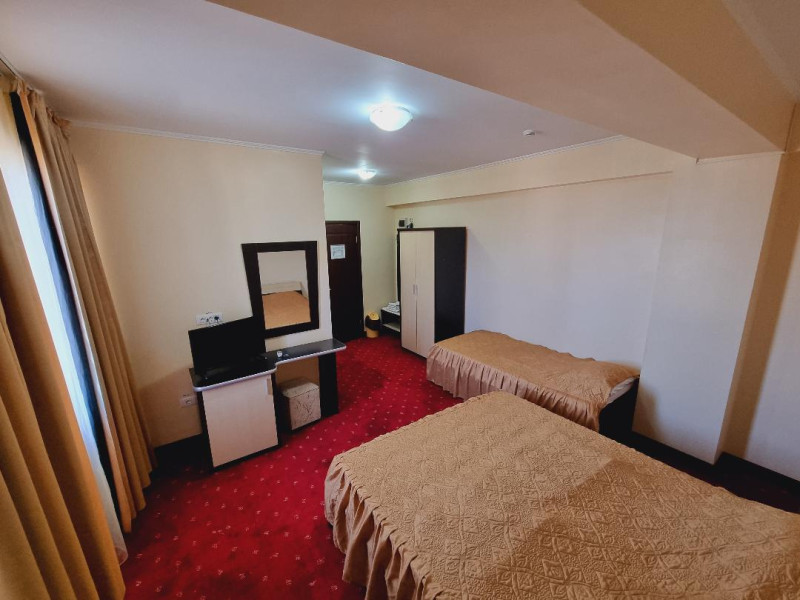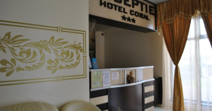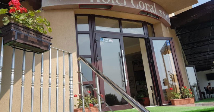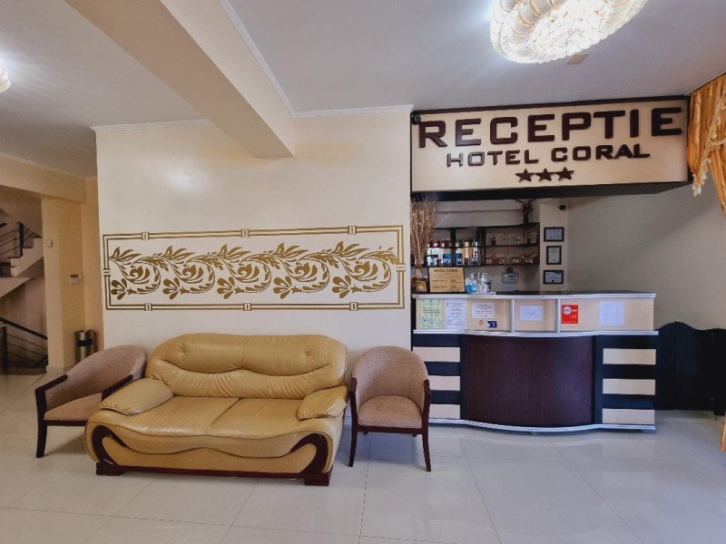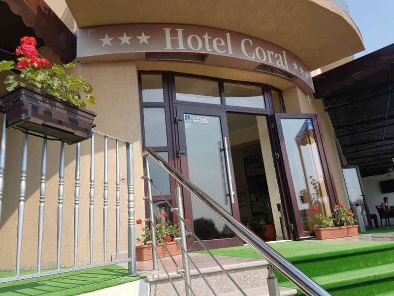 Hotel Coral din Eforie nord oferÄ servicii de calitate pentru vacante de neuitat. DotÄri generale: parcare proprie cu o capacitate de 70 locuri, loc de joaca pentru copii, terasa, demisol, parter si 7 etaje,lift. DotÄri camere: aer condiÈionat ,tv, mobilier modern, baie proprie cu cabina de dus, rÄcitoare, balcon pentru toate camerele, excepÈie cele de la parter si demisol. NumÄrul de camere :68,dintre camere 4 camere Twin, 6camere Triple, 58 camere duble.Datorita dinamicitatii domeniului disponibilitatea ofertelor se modifica de la un moment la altul. De aceea ofertele sunt valabile in limita locurilor disponibile. Agentia nu este responsabila pentru eventualele neconcordante care pot aparea intre informatiile privind tarifele si alte detalii din site si informatiile primite in agentie. In aceste cazuri vor avea prioritate, intotdeauna, informatiile primite in agentie.
