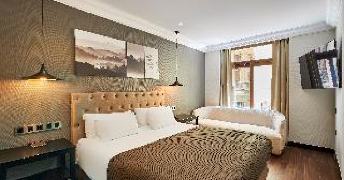 This attractive hotel is found in the centre of Barcelona, near the University, the Plaza Cataluña and Las Ramblas. There are several shopping areas surrounding the hotel where guests may explore the different shops, boutiques, bars and restaurants. The nearest public transport links are 100 m away. This hotel was built in 1950 and has 5 floors and a total of 44 rooms of which 16 are singles and 18 are doubles. Guests are offered a reception that is open around the clock, safes for guests' valuables, lifts, a laundry service and medical assistance. There is also a cosy hotel bar and an air-conditioned à la carte restaurant. The homely en suite rooms are fitted with a direct dial telephone as well as a safe.This attractive hotel is found in the centre of Barcelona, near the University, the Plaza Cataluña and Las Ramblas. There are several shopping areas surrounding the hotel where guests may explore the different shops, boutiques, bars and restaurants. The nearest public transport links are 100 m away. This hotel was built in 1950 and has 5 floors and a total of 44 rooms of which 16 are singles and 18 are doubles. Guests are offered a reception that is open around the clock, safes for guests' valuables, lifts, a laundry service and medical assistance. There is also a cosy hotel bar and an air-conditioned à la carte restaurant. The homely en suite rooms are fitted with a direct dial telephone as well as a safe.