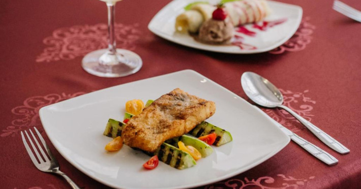 Există restaurant à-la-carte și bar și se oferă zilnic bufet de mic dejun. Gara Covasna și a mocăniței se află la 2 km de proprietate.
