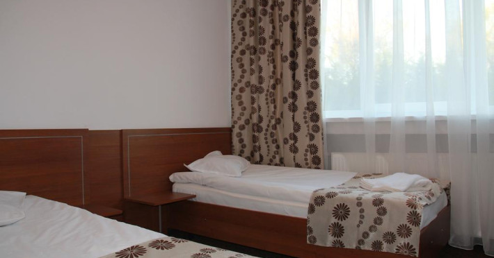 Amplasat in zona centrala a statiunii, langa bazinele cu apa sarata. Facilitati hotel: 60 camere duble si 3 apartamente clasificate la 3*, restaurant 2* (248 locuri), terasa, bar de zi, baza de tratament, sauna, strand cu apa minerala (3 bazine), terenuri de sport (fotbal, handbal si tenis de camp), parcare gratuita (in limita locurilor disponibile). Facilitati camere: TV, minibar, baie cu cadita de dus.Datorita dinamicitatii domeniului disponibilitatea ofertelor se modifica de la un moment la altul. De aceea ofertele sunt valabile in limita locurilor disponibile. Agentia nu este responsabila pentru eventualele neconcordante care pot aparea intre informatiile privind tarifele si alte detalii din site si informatiile primite in agentie. In aceste cazuri vor avea prioritate, intotdeauna, informatiile primite in agentie.