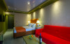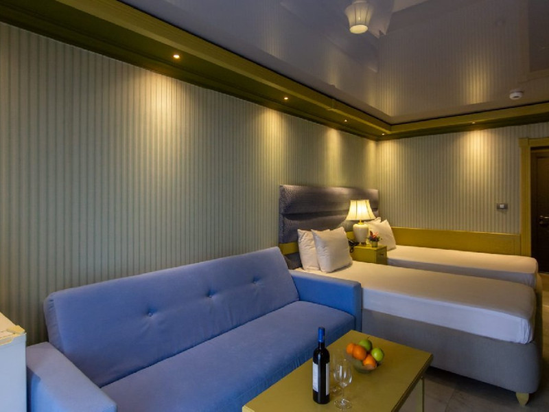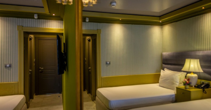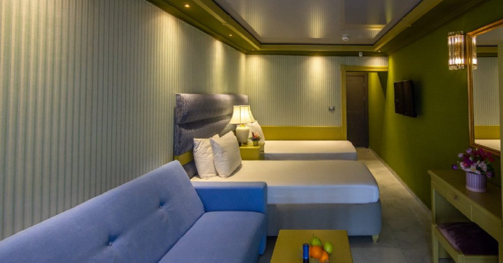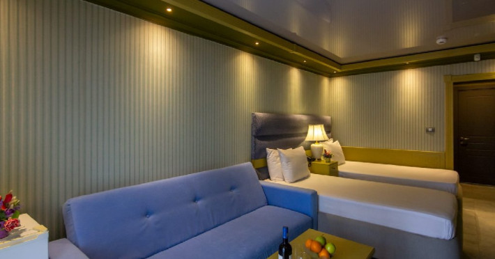 Camera family matrimoniala sau twin (DBMF/DBTF) - cuprinde un spatiu deschis cu o suprafata de 18 mp, cu zona pentru dormit cu un pat matrimonial sau doua paturi twin si un canapea extensibila, baie cu cabina de dus, si balcon sau terasa. Acestea sunt situate la parter. Nu se poate adauga pat suplimentar, doar patut bebe.