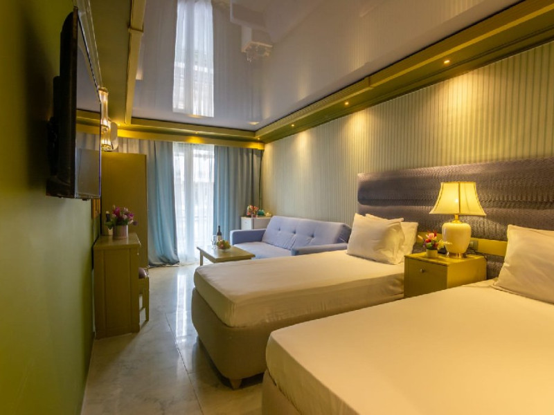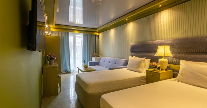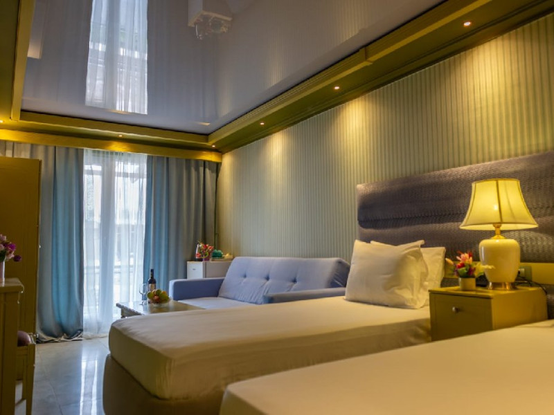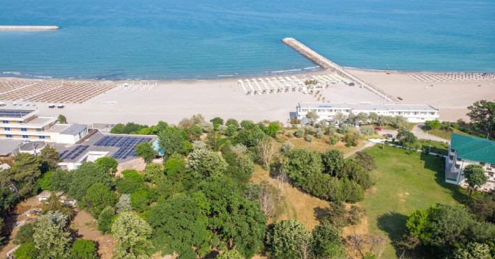 Hotelul dispune de piscine pentru adulti cu umbrele si sezlonguri in limita locurilor, mini Aquapark pentru copii; jocuri si concursuri pentru adulti si copii (piscine si terase) plaja privata cu umbrele si sezlonguri(in sectorul de plaja standard) in limita locurilor disponibile; prosoape la plaja/piscina, loc de joaca exterior, restaurant pentru mic dejun, lobby si bar de zi cu terasa.