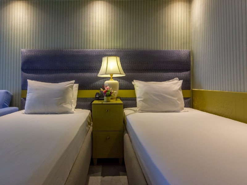 Camera standard matrimoniala sau twin (DBM / DBT)- cuprinde un spatiu deschis cu o suprafata de 16 mp, cu zona pentru dormit cu un pat matrimonial sau 2 paturi twin, fotoliu extensibil sau scaun, baie cu cabina de dus, si balcon.