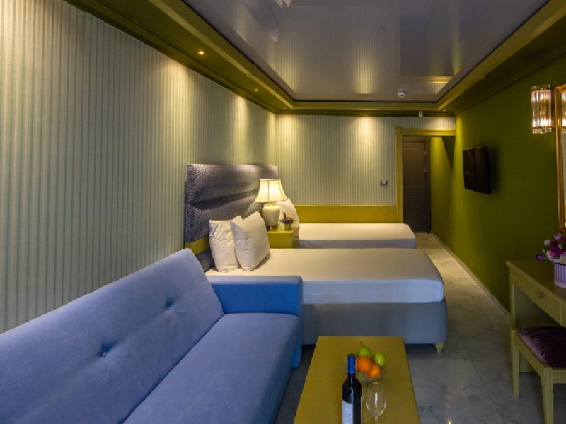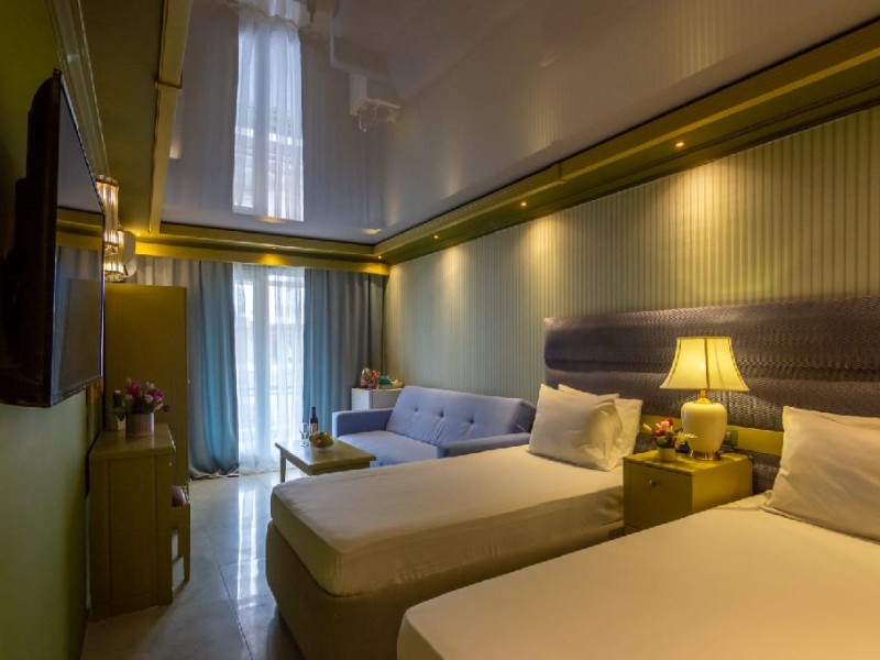 *pentru acest tip de camera, cazarea la capacitatea maxima admisa, implica utilizarea patului si a canepelei existente. Spatiul locativ nu permite adaugarea unui pat suplimentar.