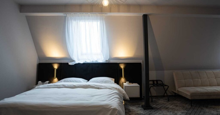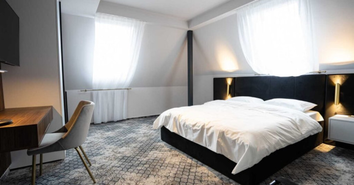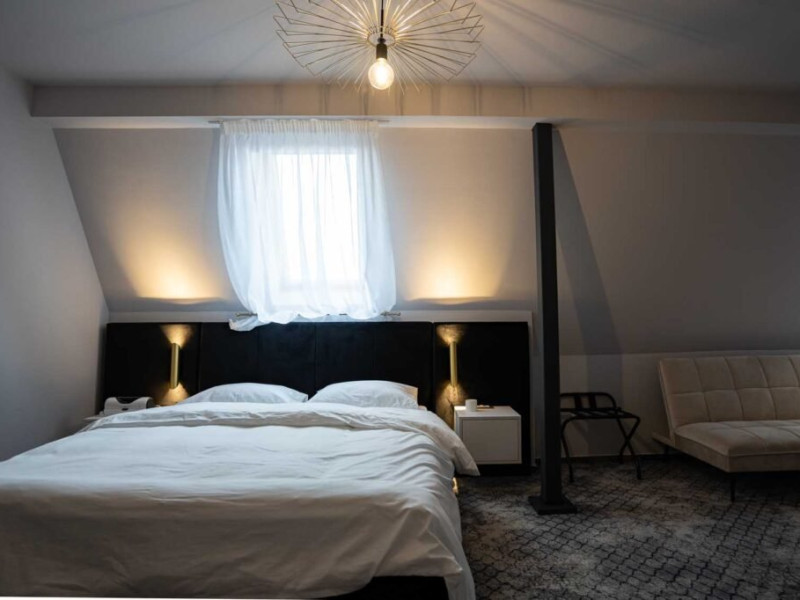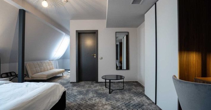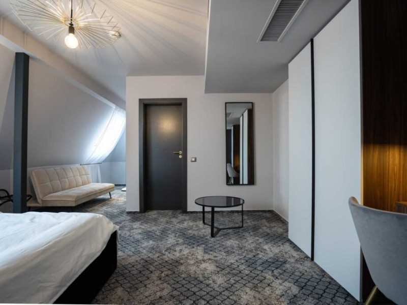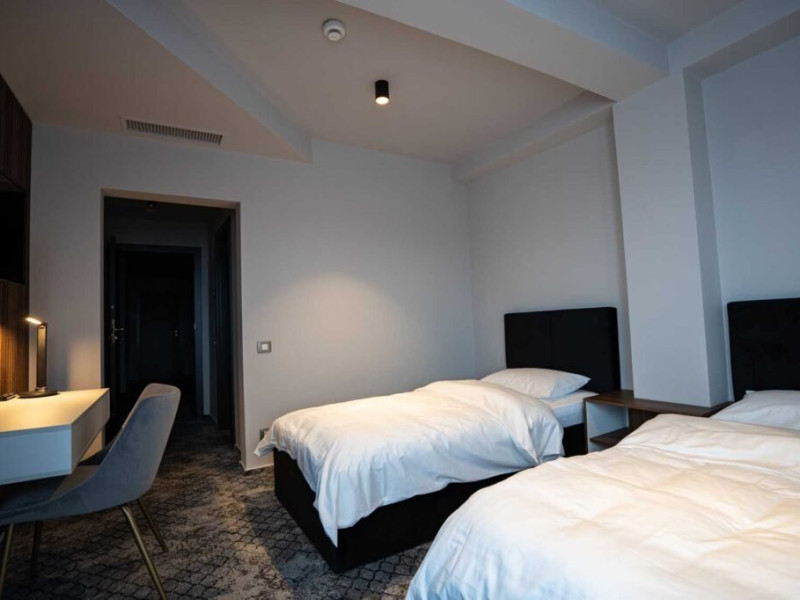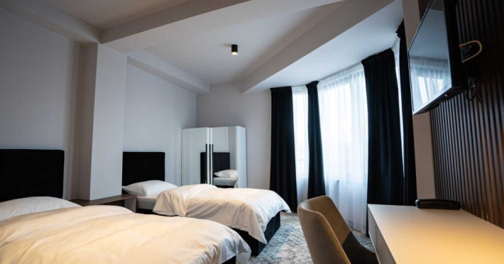 Suite: sunt ideale pentru persoanele care cauta spatiu suplimentar si confort. Camerele noastre de tip suita ofera o zona spatioasa pentru 4 persoane. Suitele dispun de un pat dublu, o canapea extensibila (in aceeasi camera), o baie cu cada si toate facilitatile pentru un sejur confortabil.