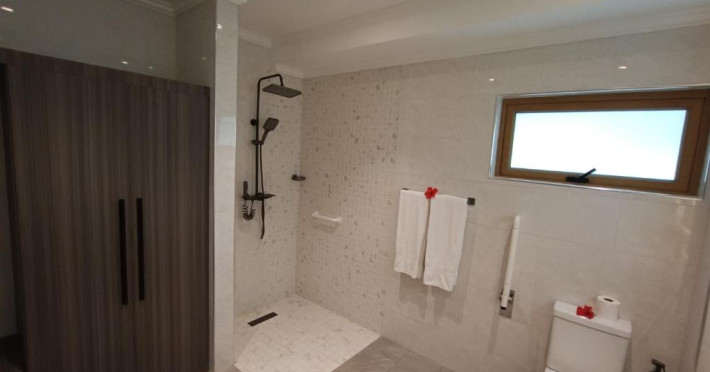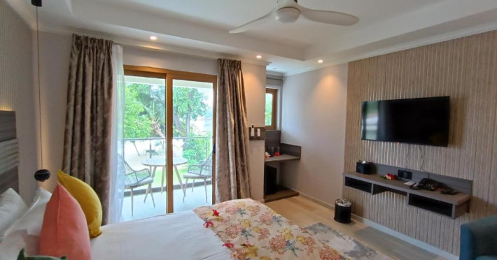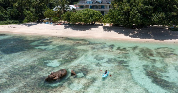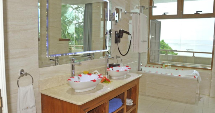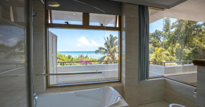 Camerele elegante combină elementele moderne cu influențele arhitecturii creole, fiind dotate cu balcoane private care oferă priveliști superbe spre Oceanul Indian. Oaspeții se pot bucura de piscina infinity cu vedere panoramică, restaurantul cu specific local și internațional, precum și de barul de pe plajă.