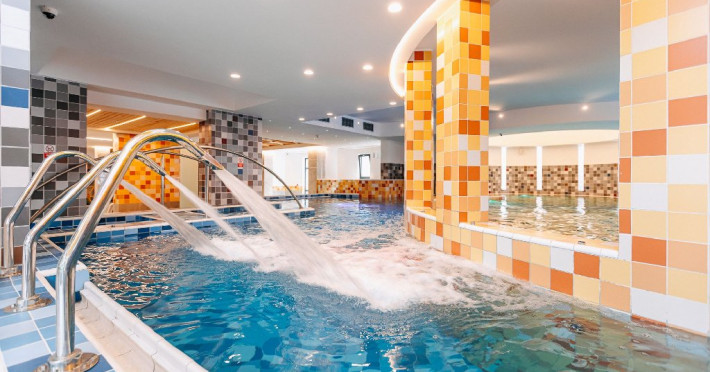 Zona de wellness a hotelului este amenajata la subsol, oferind piscine cu apa dulce si sarata, doua zone interioare si una in aer liber, piscina pentru copii, tobogane pentru placerea oaspetilor pasionati de experiente tip aquapark si o piscina unica de aventura in zona, diferite tipuri de saune, o unitate de servicii terapeutice cu asistenta medicala, servicii de masaj si un bar cu gustari si bauturi.