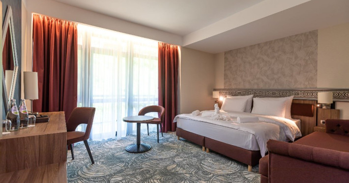 Hotelul nou construit, situat in centrul orasului Sovata, la doar cateva minute distanta de cel mai mare lac heliotermic din lume, Lacul Ursul.Hotelul dispune de: 104 camere, Zona de wellness, restaurant, bar, centru de conferinta, sala de spor