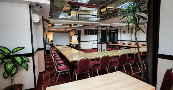 Sala de conferinta cu o capacitate de 80 locuri, complet echipata din punct de vedere tehnic (videoproiector de ultima generatie, ecran proiectie, flipchart, Lcd-Tv, sonorizare, internet wireless, consumabilele oferite gratuit.
